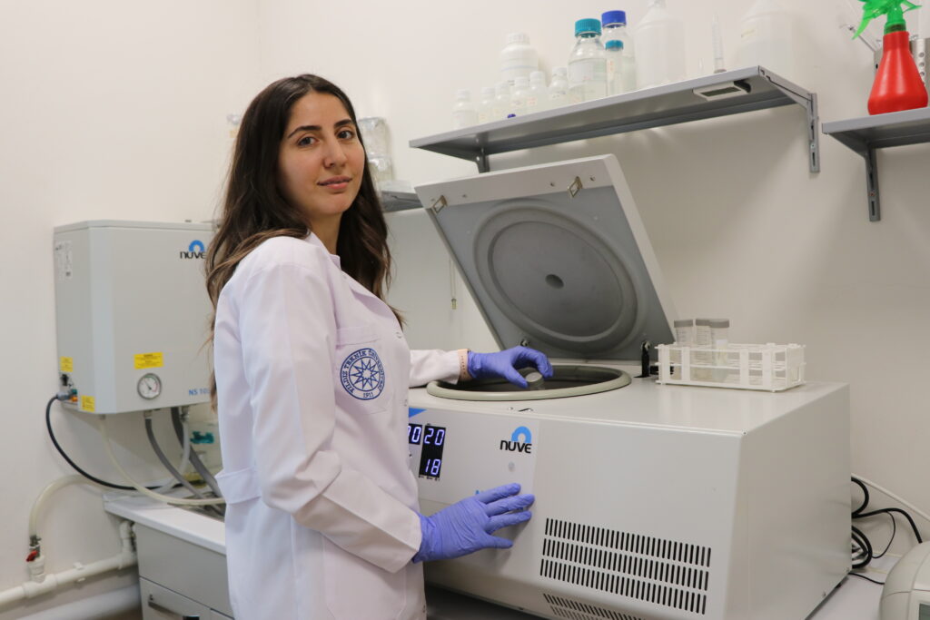 Begüm Esra Aytan: Tüm besiyer çalışmalarımızın hazırlanması için kullandığımız suyu distile su cihazlarından alıyoruz. Reaktörde büyük ölçekte üretim yaptığımızda hücreleri çöktürmek sonrasında onlardan izolasyon yapmak için soğutmalı santrifüjü kullanıyoruz. Parçalıyoruz, tekrar çöktürüyoruz, içinden enzimleri çekiyoruz. Otoklavı; besiyerin hazırlığında tüm malzemelerin sterilizasyonunda, reaktörün sterilizasyonunda kullanıyoruz. Mikro santrifüjü ise küçük boyuttaki çalışmalarımız için kullanıyoruz. Örneğin DNA izolasyonu yaparken, bakterilerle özel olarak bir enzim analiz edeceksek, az miktarda hücre kültüründen protein elde ederken ve enzimi izole ederken kullanıyoruz.